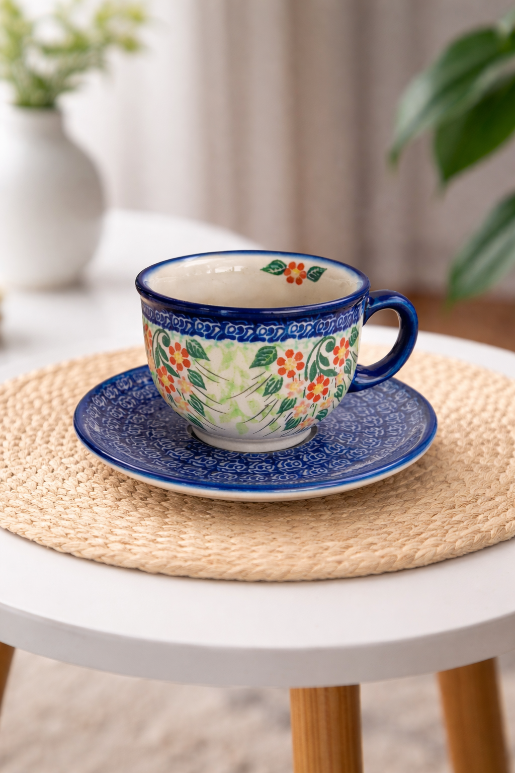 Ceramika bolesławiecka słynie z trwałości oraz odporności na codzienne użytkowanie. Filiżankę można bezpiecznie myć w zmywarce, dlatego korzystanie z niej jest wygodne i praktyczne.