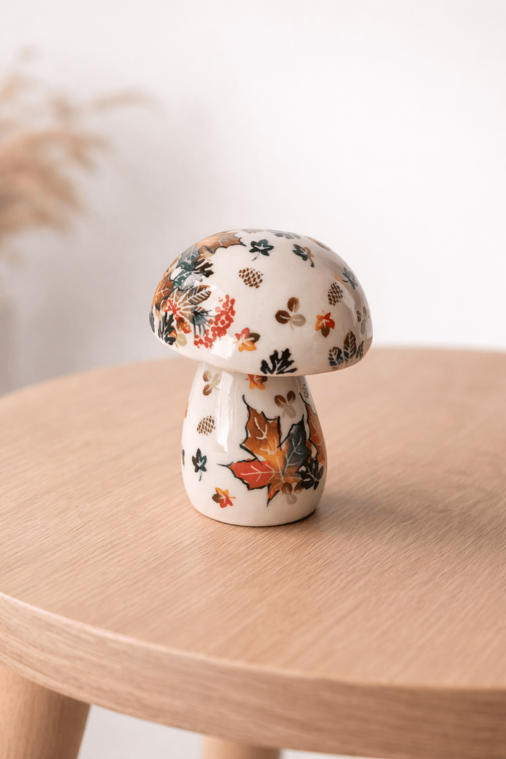 Mały ceramiczny grzybek wprowadza do wnętrza lub ogrodu przytulny, naturalny klimat. Świetnie prezentuje się na półce, parapecie, stole lub wśród roślin jako dekoracja inspirowana naturą.