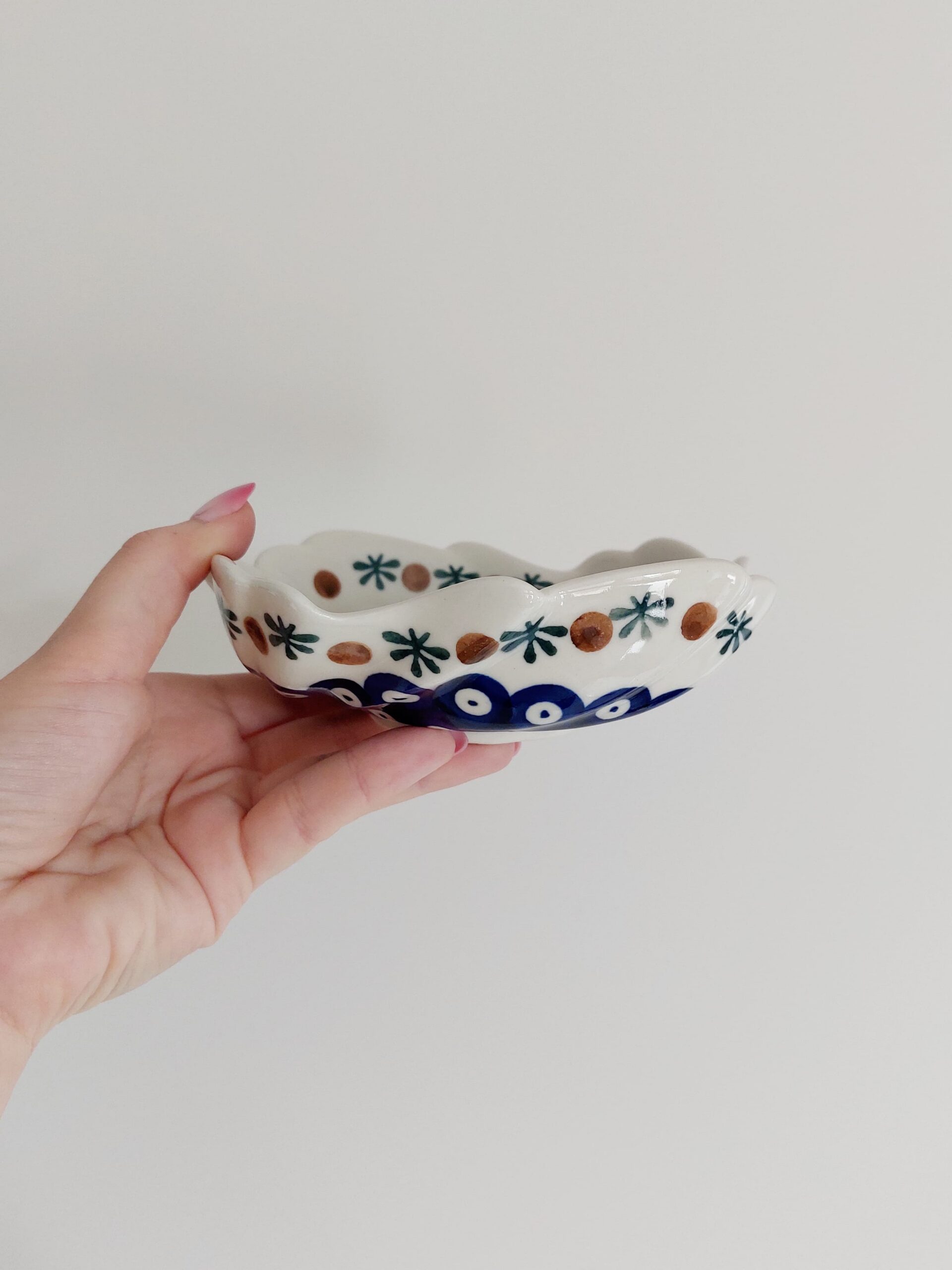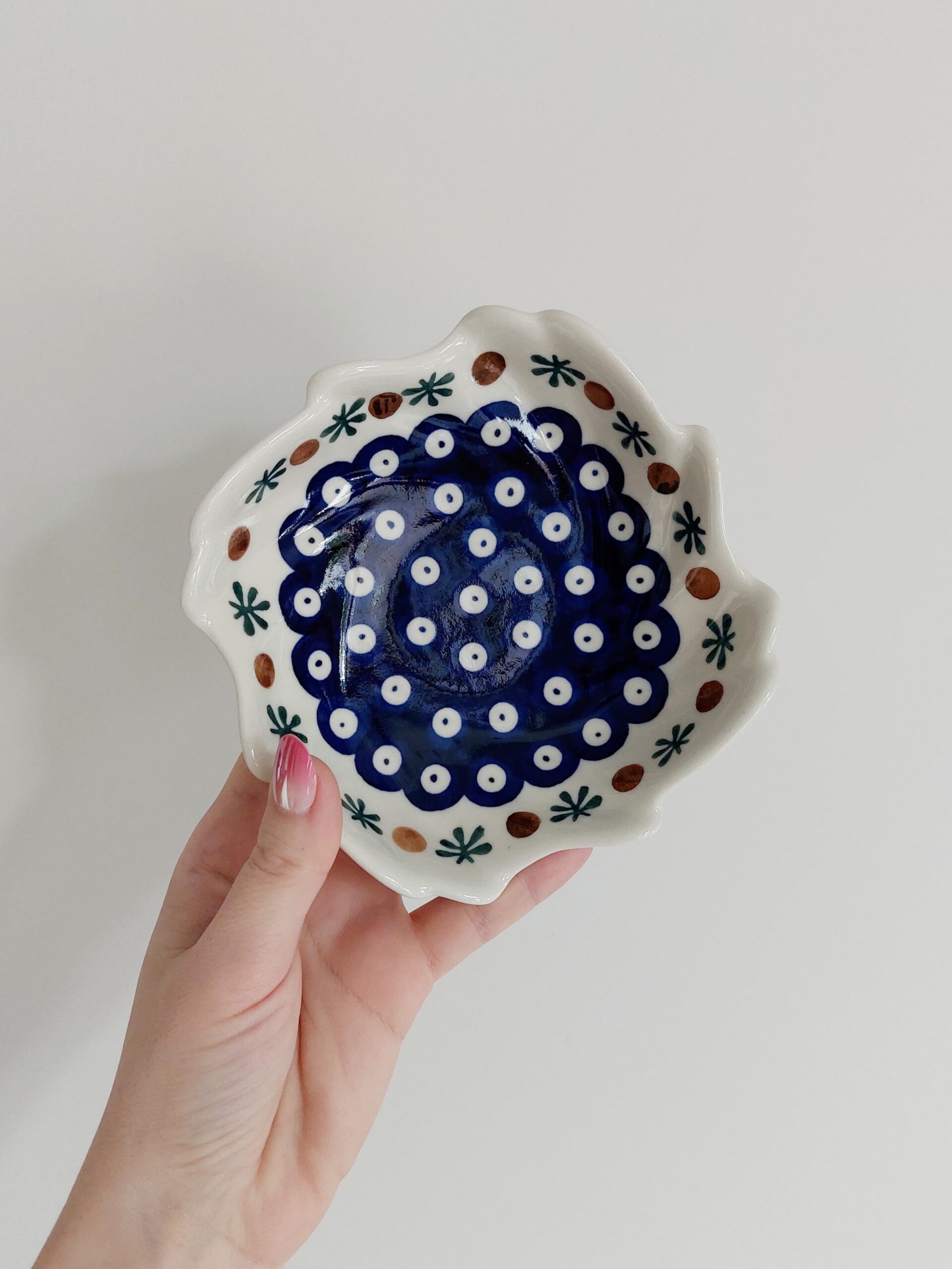 Miska ceramika Bolesławiec w kształcie „F” to praktyczna i kompaktowa miseczka idealna na drobne przekąski, orzeszki czy inne smakołyki. Jej ciekawy kształt sprawia, że prezentuje się bardzo estetycznie na stole i zbiera mnóstwo komplementów 🙂