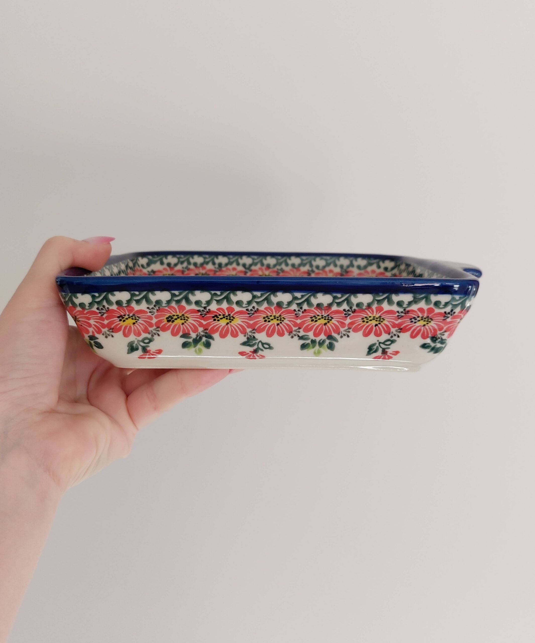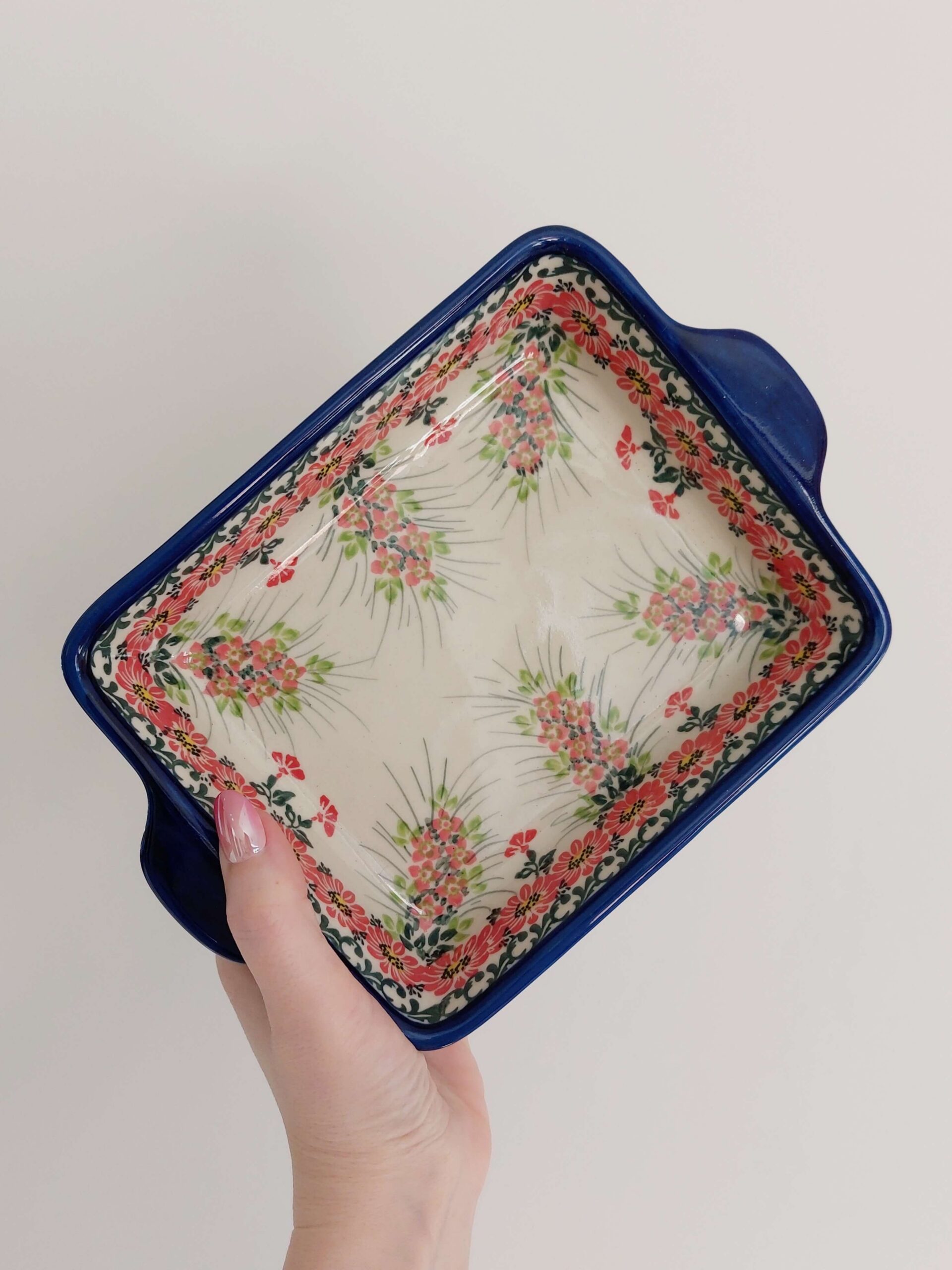 Naczynie do zapiekania Bolesławiec małe to praktyczne i estetyczne naczynie z ceramiki bolesławieckiej. Sprawdzi się do pieczonych owsianek, małych zapiekanek oraz deserów na ciepło.