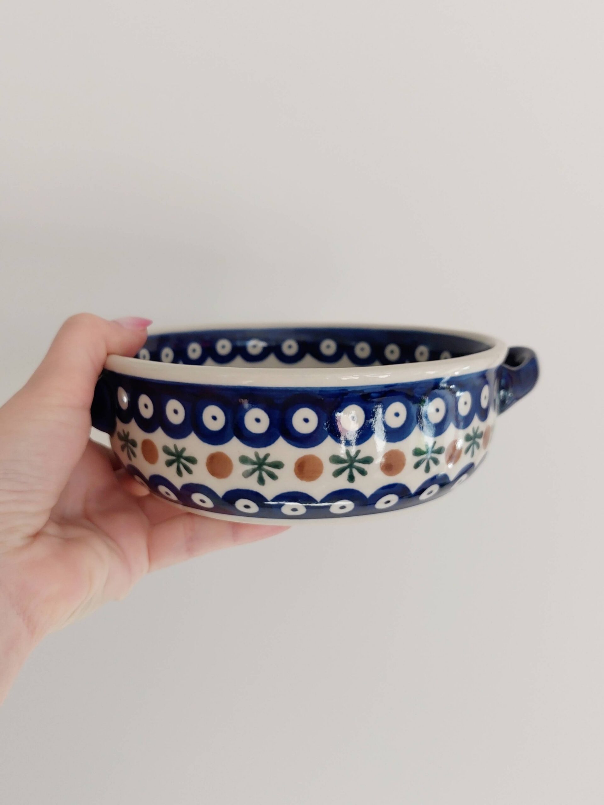 Ceramika bolesławiecka jest trwała i wygodna w użytkowaniu – rondel można bezpiecznie myć w zmywarce oraz używać w piekarniku do zapiekania potraw. Do rondla można również dokupić pokrywkę, która pasuje do każdej wielkości rondelka z tej serii.
