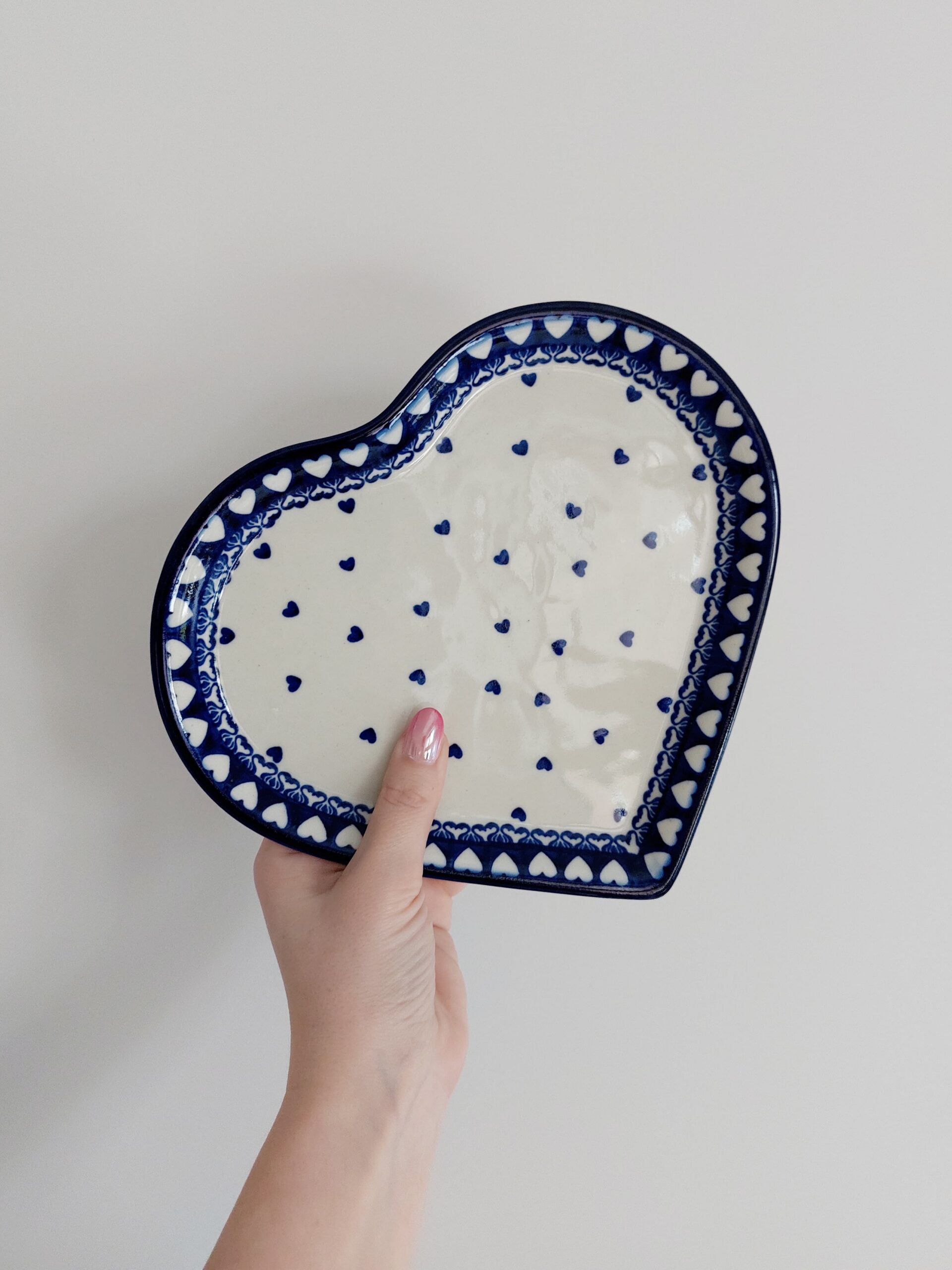Talerz w kształcie serca z ceramiki bolesławieckiej to uroczy i ponadczasowy element zastawy stołowej. Wykonany z wysokiej jakości ceramiki łączy tradycyjne rzemiosło z eleganckim i funkcjonalnym designem.