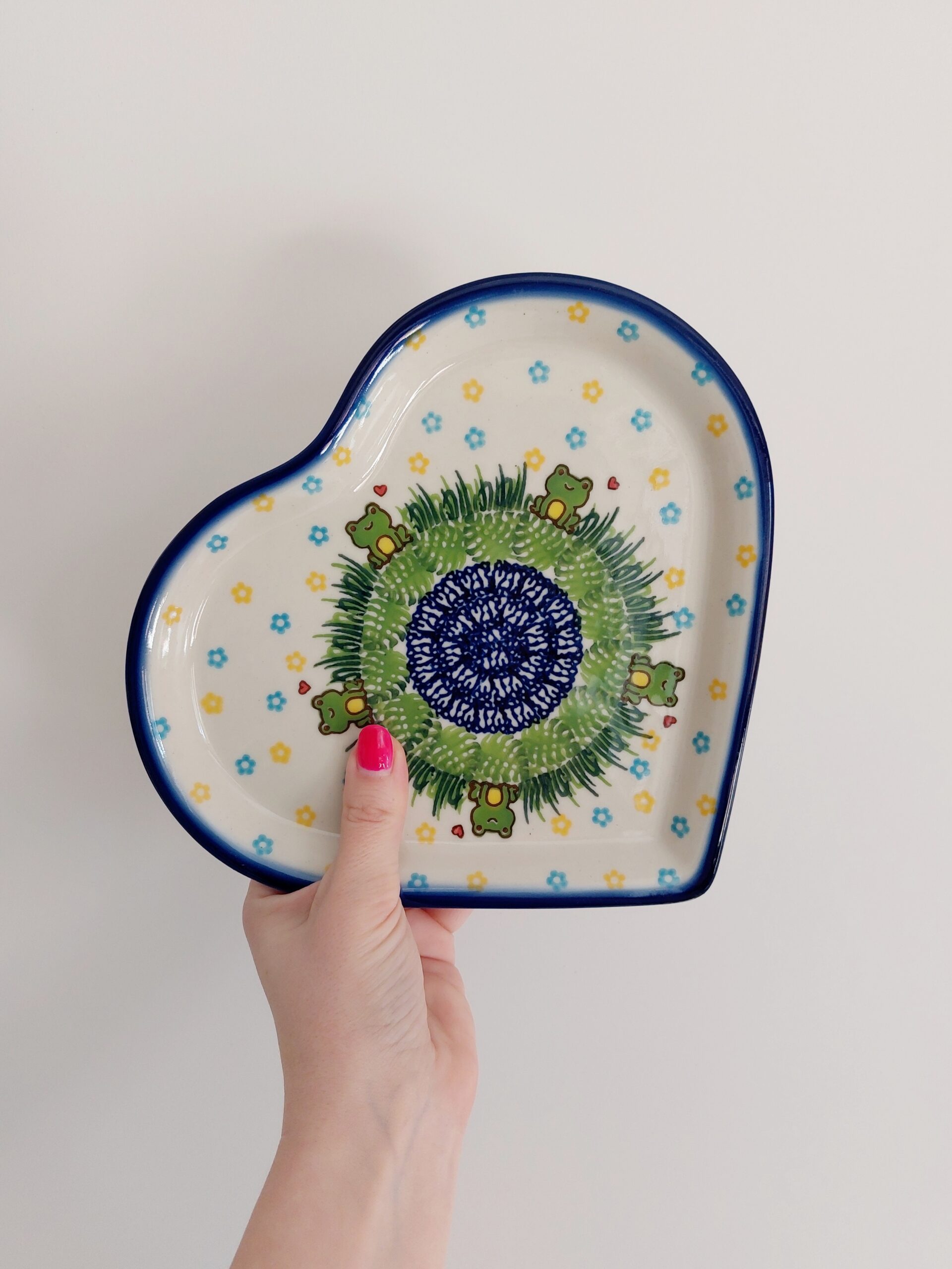 Talerz w kształcie serca z ceramiki bolesławieckiej to uroczy i ponadczasowy element zastawy stołowej. Wykonany z wysokiej jakości ceramiki łączy tradycyjne rzemiosło z eleganckim i funkcjonalnym designem.